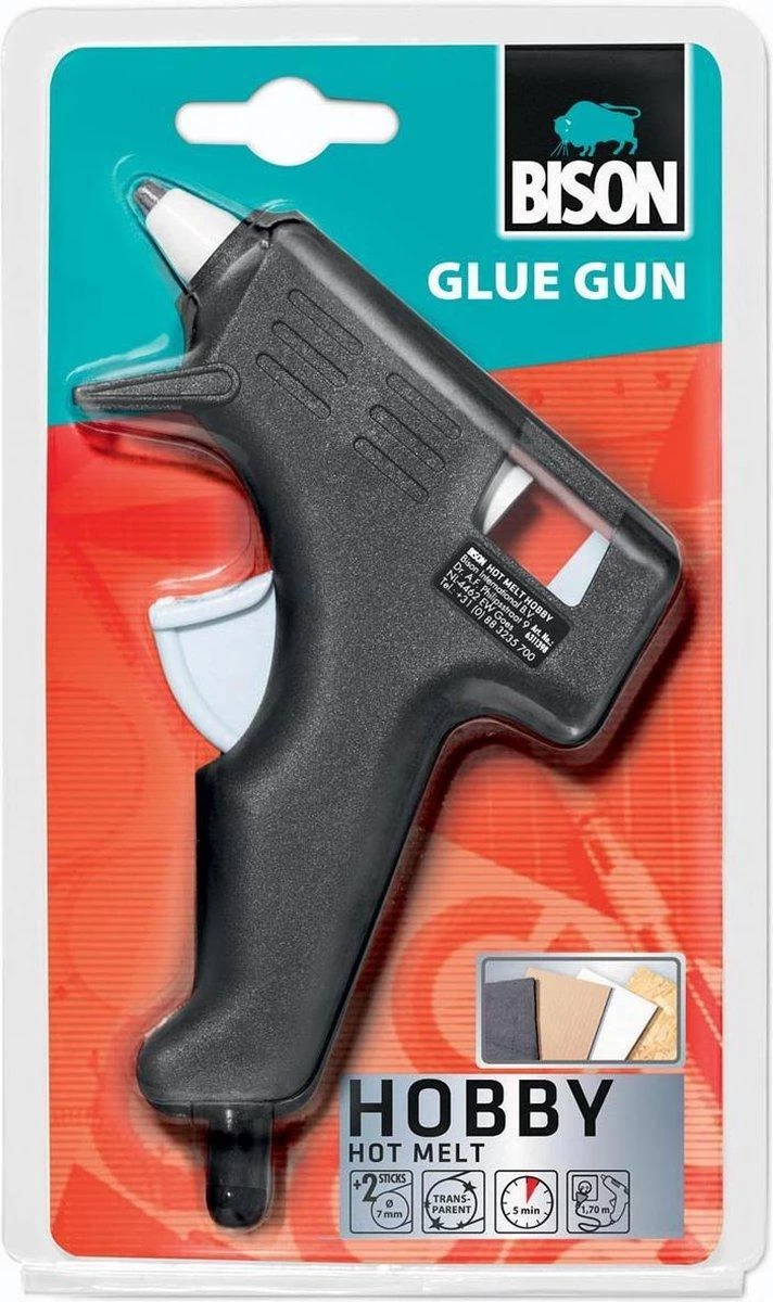 Lijmpistool voor hobby- en decoratieve doeleinden. Geschikt voor vele soorten materialen. Sterk, eenvoudig en snel. Lijmt in seconden vele poreuze en niet-poreuze materialen, zoals hout, diverse plastics, droogbloemen, schoenen, textiel, karton, tegels, keramiek glas, etc., zowel onderling als in combinatie. Tevens geschikt voor het snel maken en goed repareren van tapijten, kleden, boekbinden, schoenzolen, hakken en vele andere klussen. Speciaal voor kleinere oppervlakken.