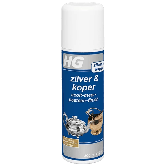 HG zilver & koper nooit meer poetsen finish voorkomt dofheid en verkleuring van zilveren of koperen kandelaars, antieke theepotten en andere voorwerpen. Hiermee is het poetsen van zilveren en koperen voorwerpen verleden tijd!
