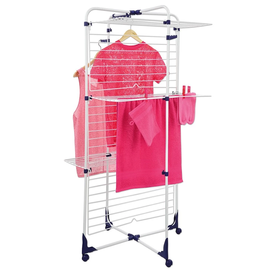 De droogtoren is geschikt voor korte en lange kleding. Het is tevens voorzien van 2 ophangpunten voor 6 kledinghangers.