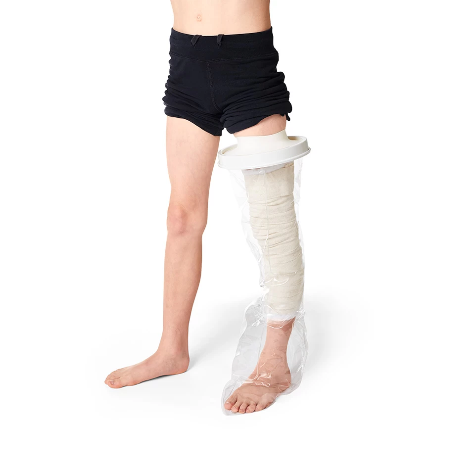 Deze douchehoes van Vitility is speciaal gemaakt voor het been van een kind. Het beschermt gips of verband tijdens het douchen. De elastische sluiting zorgt ervoor dat er geen water in de hoes kan komen. De hoes kan men gemakkelijk zelf omdoen en kan meerdere malen gebruikt worden.